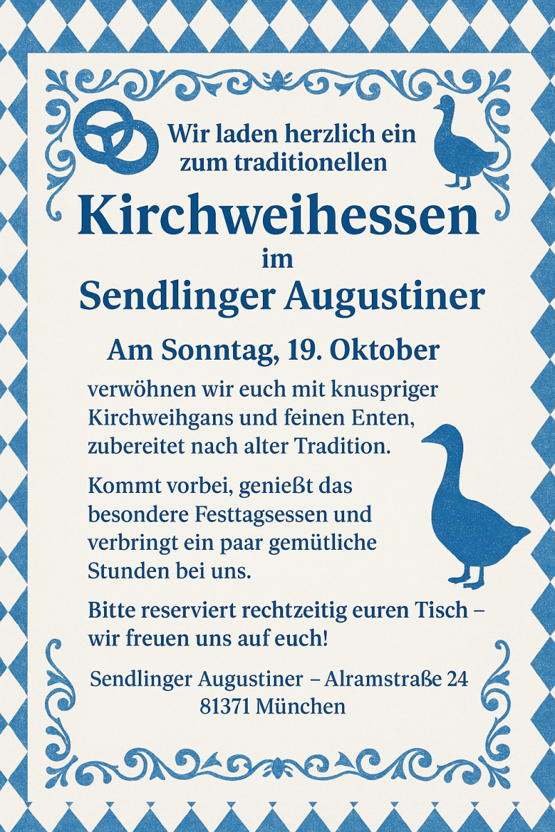 Anfragen per Mail an verwaltung@sendlingeraugustiner.com oder Telefon 0170/7100118